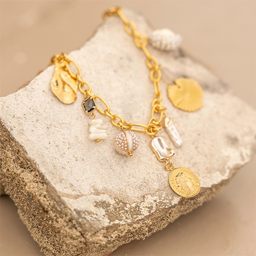 Get inspired this spring with natural earth tones and sealife jewellery. Create beautiful asymmetrical long earrings with shell, pearls, crystal glass, bamboo and jasseron or make a nice statement link chain with various charms. Make matching bracelets with shell charms, freshwater pearls and stainless steel sealife charms. Add ready-made bangle bracelets and statement rings for a beautiful spring collection!