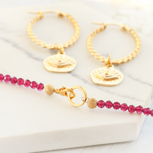 Need inspiration for making trendy jewellery with the evil eye? You're in the right place! We have already started and made a number of contemporary items. Make a stylish necklace with belcher chain for example and hang your favourite charm with the evil eye or all-seeing eye on it. Of course, you can also make cool minimalist earrings with these charms. First choose an earring finding or creole and attach the evil eye or all-seeing eye charm. Do you want to use some more colour? Use rocailles, top faceted beads and DQ European metal beads to thread a necklace. Use a pendant with an eye to attach a charm.