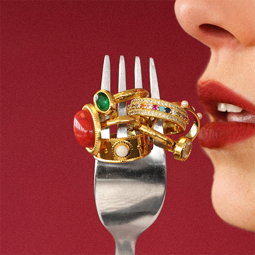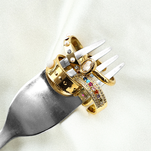 • Stainless steel rings pearl Gold-White