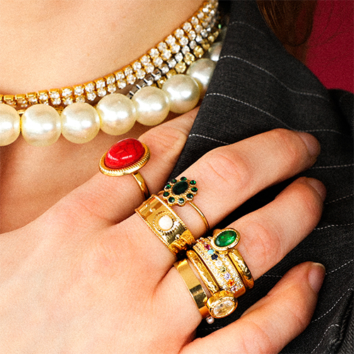 • Stainless steel rings pearls Gold