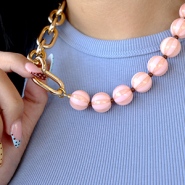 16 mm DQ® acrylic beads with stripes Light Pink-Peach Pink